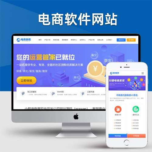 藍(lán)色小程序網(wǎng)站pbootcms模板-小程序電商軟件開(kāi)發(fā)公司網(wǎng)站源碼(pc+wap)