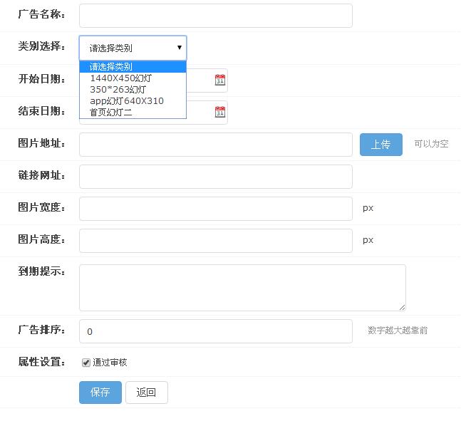 找到【擴(kuò)展】,選擇【廣告管理】,點(diǎn)擊【添加圖片廣告】。首先填寫【廣告名稱】,其次選擇好【類別選擇】,之后上傳【圖片地址】,填寫好【鏈接網(wǎng)址】,定義好【圖片寬度】、【圖片高度】,最后點(diǎn)【保存】就可以